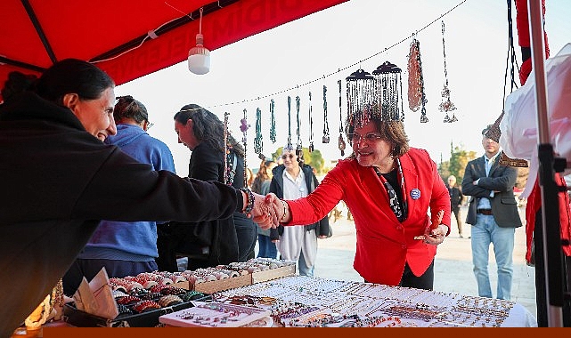 Emekçi Kadınlar Pazarı’nı Didim Belediye Başkanı Hatice Gençay da ziyaret ederek stant açan kadın üreticilerle bir araya geldi. Üretici kadınlarla sohbet eden Başkan, kadınların el emeği ürünlerini inceleyerek üretimlerine destek verdi.