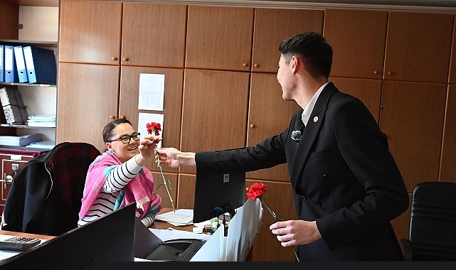 Belediye binasında çalışan kadın personelin günlerini kutlayarak karanfil dağıtan Erdal ve yönetim kurulu üyeleri, kadın çalışanlara kolaylıklar diledi.