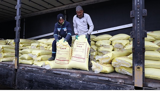 Büyükşehir’in yüzde 50 hibe desteğinden yararlanan çiftçiler, gübrelerini teslim alarak tarlalarının yolunu tutuyor.