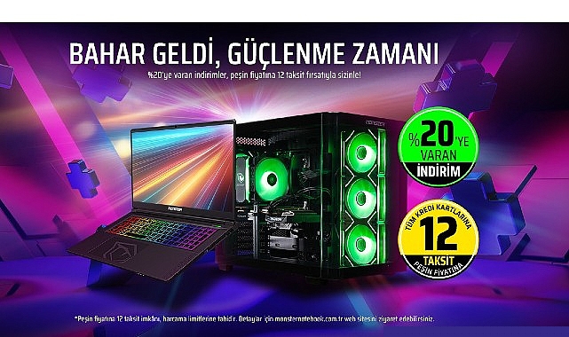 Türkiye’nin performans odaklı teknoloji markalarından Monster Bilgisayar, mart ayına özel hazırladığı “Bahar Geldi, Güçlenme Zamanı” kampanyasıyla kullanıcılarına güçlü bir teknoloji deneyimi sunuyor. 1–31 Mart 2026 tarihleri arasında geçerli kampanya kapsamında laptop ve masaüstü ürünlerinde yüzde 20’ye varan indirim fırsatları teknoloji severleri bekliyor. Monster ürünleri hem çevrim içi mağazada hem de Monster deneyim mağazalarında avantajlı ödeme seçenekleriyle kullanıcılarla buluşuyor.